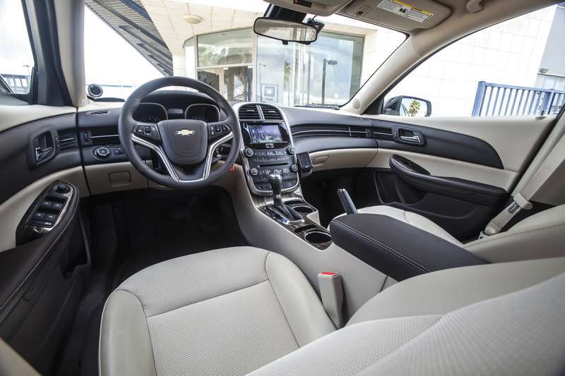 כיאה לתקופה, המאליבו כוללת מערך מולטימדיה עם צג מגע, אך הבלוטות' אינו מקורי וגם המצלמה והחיישנים אינם כאלה. מעבר לכך כוללת המאליבו שילוב עור בריפוד, תפעול חשמלי למושבים ועוד. תא הכפפות קטן ותא נוסף משמאל להגה אינו נראה איכותי, אך המאליבו מפתיעה עם תא אכסון מאחורי צג המגע. עם שפע הכיוונים אפשר לייצר תנוחת נהיגה טובה, אבל המושב אינו נוח בנסיעות ארוכות. גם הראות לאחור אינה טובה. מאחור המרווח לרגליים טוב אך פחות מרשים לראש. תא המטען נוח וגדול.