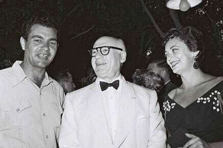 מלכת הבריגדה. במלחה"ע השניה התגייסה מרון לבריגדה והופיעה לצד מי שהפך לבעלה הראשון, יוסי ידין (משמאל) // צילום: לע"מ