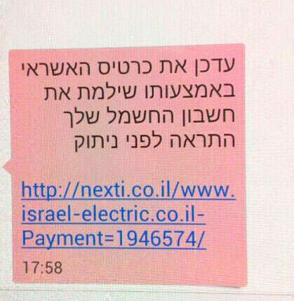 קיבלתם אתמול מסרון מחברת החשמל עם קריאה לעדכון פרטי התשלום שלכם? התעלמו. חברת החשמל מזהירה כי מדובר בהודעה מפוברקת. חמ"ל הסייבר של החברה איתר את המקור - ויוזמי המסרון הפסיקו את שליחתו.