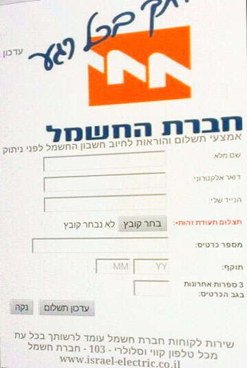 מאות פניות הציפו בשעות הערב את מרכזי שירות הלקוחות של חברת החשמל. לטענת הלקוחות, בהודעה נטען שאם לא יעדכנו את פרטי התשלום המלאים שלהם, כולל מספר האשראי, ינותק זרם החשמל בביתם.