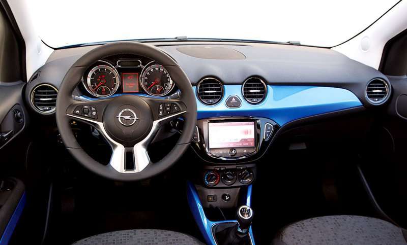 סביבת הנהג מתהדרת ביריעת פלסטיק כחולה כצבע המרכב, שממשיכה לדפנות. חבל רק שמערכת האוורור רועשת בצורה מוגזמת (במצב שקט היא לא יעילה בימים החמים) ושהפתחים שלה קשים לכיוון ולסגירה. במרכז בולט מערך מולטימדיה־בלוטות' מקורי בסגנון משפחת הג'נרל והמחוונים נאים. קל לייצר תנוחת נהיגה טובה עם שפע הכיוונים כאשר ההגה נע גם למרחק. המושבים נוחים ותומכים, ויחסית לז'אנר באדם יש מרחב סביר לשניים מאחור, גם אם זה בוודאי לא הרכב הנוח ביותר למבוגרים. תא המטען קטן (170 ליטר), אך מה שמפריע יותר הוא מבנה לא נוח - קצר ועמוק עם שפת טעינה גבוהה.