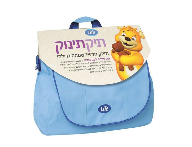 מאפיינים: משלב ווים לתליית התיק על העגלה. התיק מגיע עם ערכת מוצרים לאם ולתינוק: רפידות הנקה, ג'ל היגייני לידיים, משחת החתלה, מגבונים לחים, זוג מוצצים אורתודנטיים, בקבוק הזנה ללא ביספינול, תחליב רחצה ושמפו לתינוק, ספרון תמונות לעגלה.