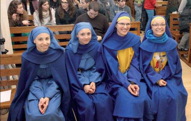 החליפה את חיי הזוהר בגלימה כחולה. אוליברס (שנייה מימין) בתור נזירה מן המניין