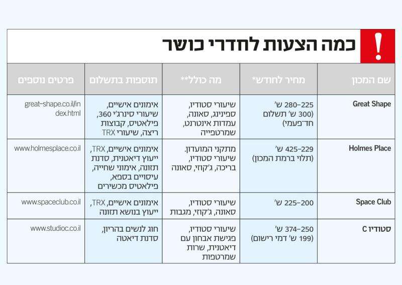 קובי מצליח, מאמן כושר אישי, מדריך ספינינג ופילאטיס, היה פחות חד־משמעי. מבוגר שזקוק לפעילות שיקומית, לדוגמה, יכול להסתפק באימון ביתי. לעומתו, צעיר ששואף להעלות מסת שריר יעדיף פעילות בחדר כושר. מי שכן יבחר להתאמן במכון כושר, יקבל את כל ה"חבילה": אפשר לעבוד על יציבה בפילאטיס, לפתח גמישות ביוגה ולהעלות רמת סבולת לב־ריאה בספינינג. נוכחותם של המדריכים המקצועיים, כל אחד בתחומו, מבטיחה למתאמנים תמיכה והכוונה בכל החזיתות. נקודה זו קריטית משום שיש חשיבות גבוהה לביצוע מגוון פעילויות שונות. הגוף יודע להסתגל לכל אימון, ואם לא מאתגרים אותו בכל פעם באמצעות פעילות אחרת, לא תהיה התקדמות אמיתית. ואין לשכוח את הצד החברתי ואת האפשרות להכיר חברים חדשים.