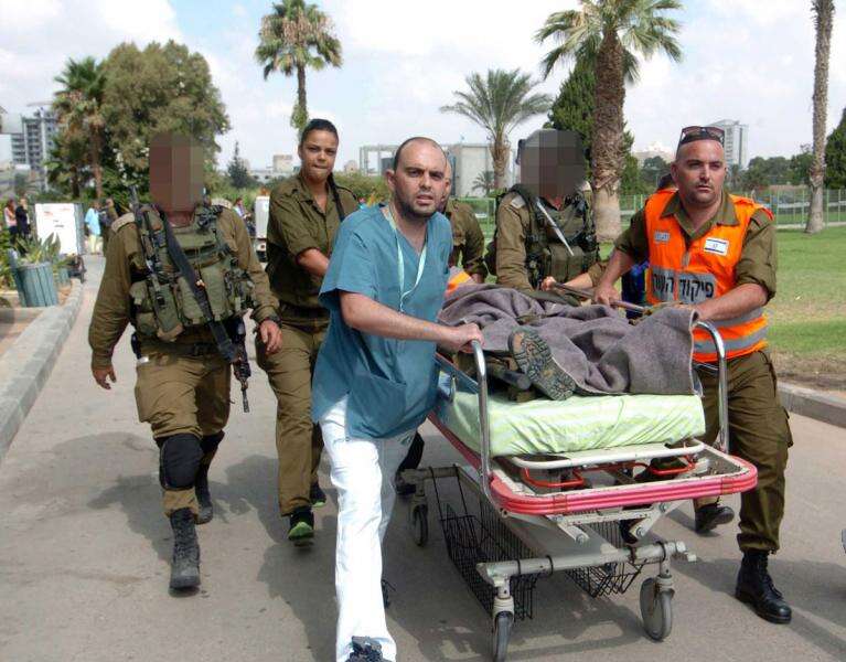 חייל צה"ל מפונה לבית החולים סורוקה // צילום: דודו גרינשפן