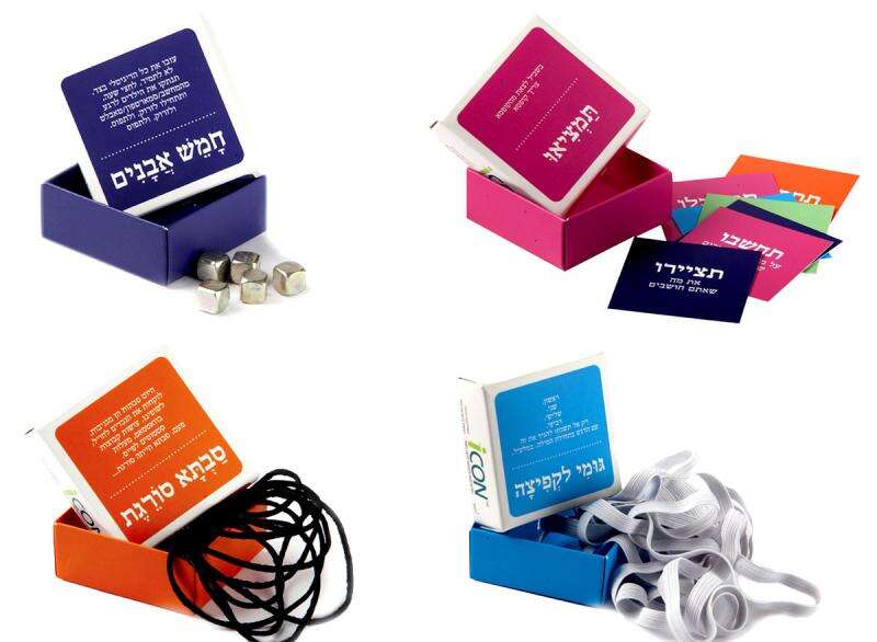 "חמש אבנים", "סבתא סורגת" ועוד. מחיר מומלץ לצרכן לערכה אחת: 10 ש'. להשיג דרך עמותת קווים ומחשבות בטלפון 058-7245279 ובאתר www.keshev.org. כל ההכנסות הן קודש לעמותה