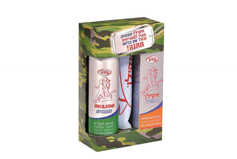 אקילן. מארז הכולל תרסיס למניעת ריחות בנעליים, קרם לשפשפות וסל כביסה מבית כצט. מחיר: 40.20 שקלים