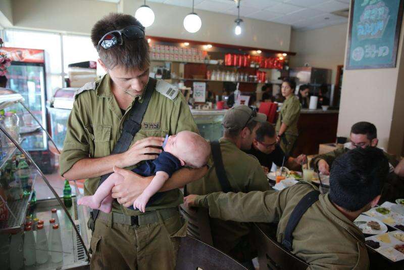 קצין מילואים פוגש בבנו הרך // צילום: זיו קורן
