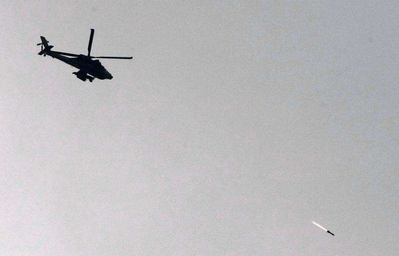 מסוק צה"ל תוקף ברצועה // צילום: אי.אף.פי