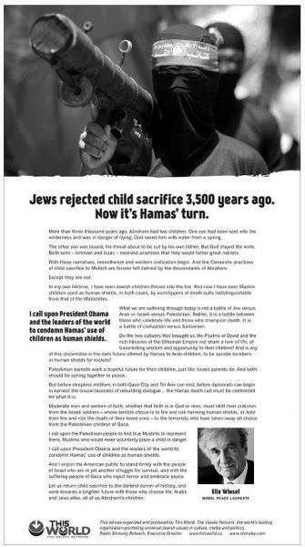 ה"טיימס" הלונדוני סירב לפרסם מודעה המבקרת את חמאס, שנוסחה על ידי חתן פרס נובל לשלום אלי ויזל והרב שמולי בוטח, שהיה אחראי גם למימון פרסומה. כך חשף העיתון "ניו יורק אובזרוור".