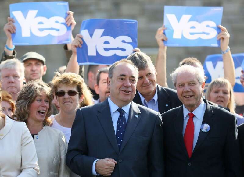 אלכס סלמונד, מנהיג מחנה הבדלנים בסקוטלנד טען כי מאמצם של השלושה הוא בגדר "מעט מדי ומאוחר מדי". יום לפני כן, סלמונד עורר כעס בקרב האנגלים כאשר אמר כי מראה סקוטים הולכים לקלפיות מזכיר לו את הבחירות הדמוקרטיות הראשונות בדרום אפריקה שהביאו לסיום משטר האפרטהייד. חרף הרוגע והביטחון ששידר סלמונד, ה"דיילי טלגרף" ציין אתמול כי עבר עליו "יום רביעי שחור" לאחר שחלק גדול מהחברות הגדולות בסקוטלנד הביעו חשש והתנגדות לעצמאות סקוטית, והבנק המרכזי של בריטניה הזהיר מפני גירעון תקציבי של 145 מיליארד פאונדים אם ינסה לממש את כוונתו לשמר את הפאונד כמטבע הסקוטי אם אכן יחול פירוד.