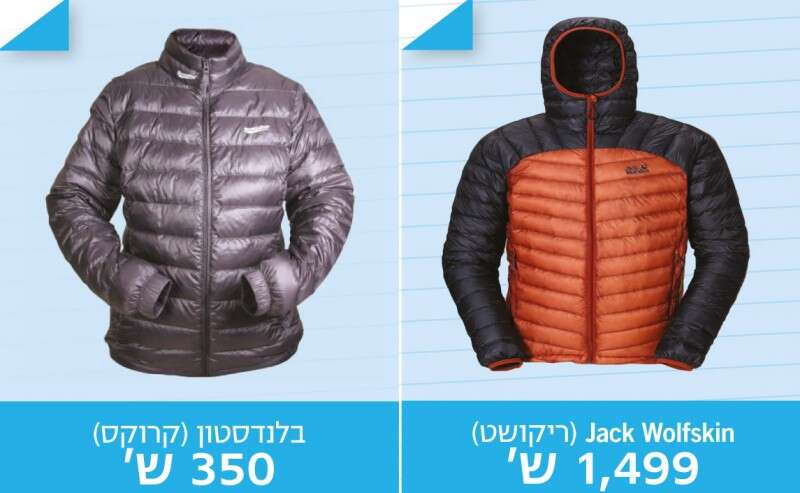 גם בתחום זה פער המחירים גדול מאוד. ברשתות האופנה אפשר להשיג מעילי פוך במחירים של החל מ־129 שקלים. ברשתות המחנאות אפשר למצוא מעילים במחירים של מאות ואפילו אלפי שקלים.