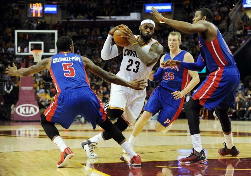 שחקני דטרויט מקיפים את לברון ג'יימס. הפסד ביתי מביך // צילום: USA Today Sports