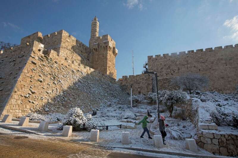 שלג ליד מגדל דוד בירושלים // צילום: אי.פי