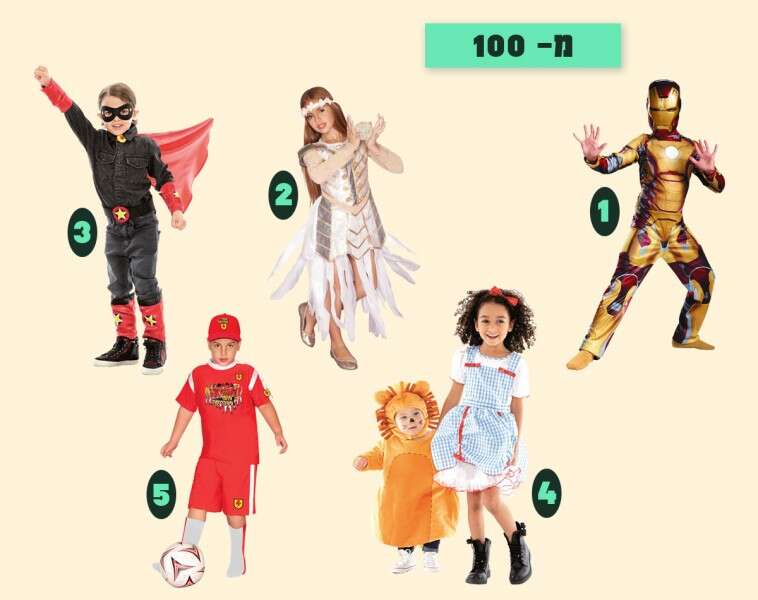 1. תות, קרטרס, 100 ש', 2. ברבי כחולה, כפר השעשועים, 70 ש', 3. באטמן, aliexpress, 80 ש', 4. נהג מירוצים (דו־צדדי), כפר השעשועים, 80 ש', 5. צבי הנינג'ה, טויס אר אס, 90 ש'