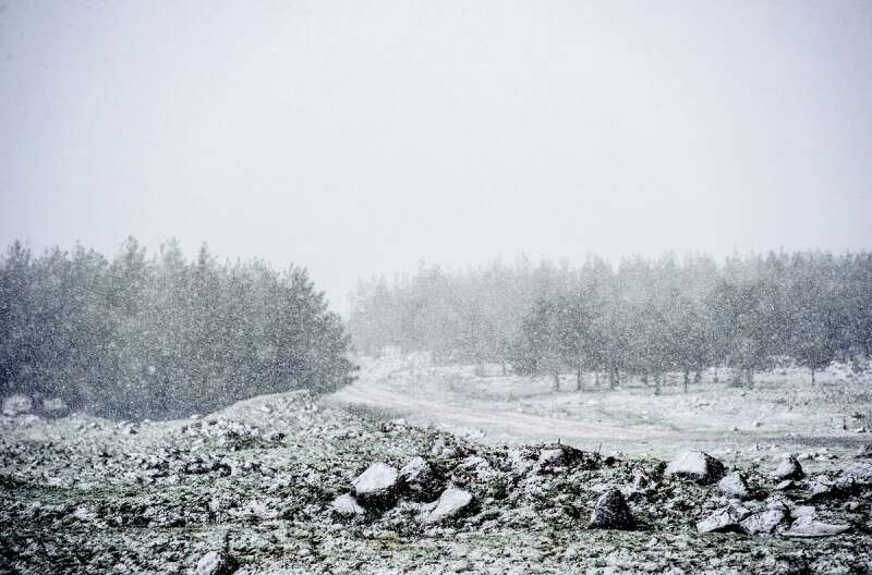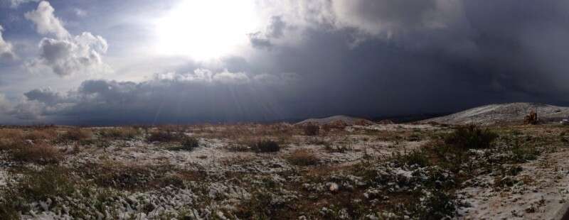 הרמה להנחתה. רמת הגולן היתה אתמול הראשונה להתכסות בשכבות לבנות, כבר החל משעות הצהריים // צילום: גיל אליהו / ג'יני