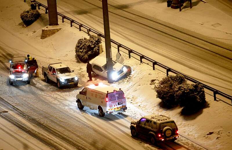 הצד השחור של השלג. כצפוי, הפתיתים הלבנים גרמו למכוניות בכבישי ירושלים להחליק // צילום: מירי צח