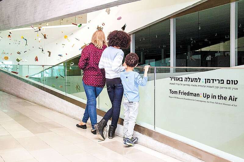 זהו יום האמנות. מבקרים במוזיאון ת"א מתרשמים מהמיצג של טום פרידמן // צילום: רוני קאופמן