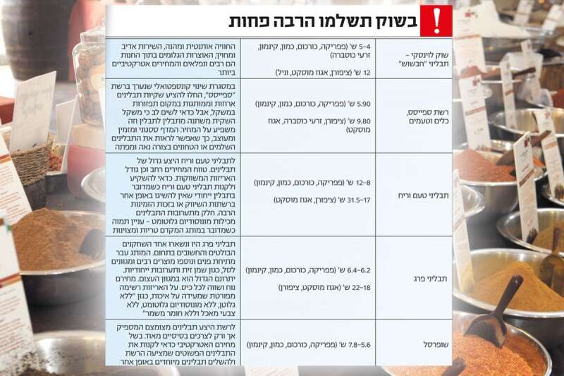 לשם כך ערכתי השוואה קלה בין התבלינים השונים וחוויית הקנייה האחרת. יש לציין שאיכותם של התבלינים שאותם בדקתי היתה גבוה ואחידה, וכן שתבלינים בצורתם הלא טחונה אינם נפוצים בכל מקום ורוב התבלינים שנבדקו הם טחונים.