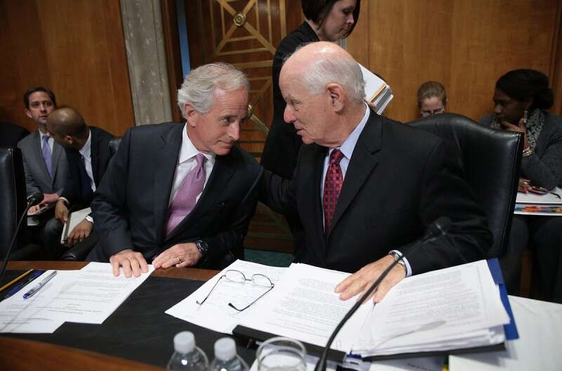 הסנאטור קורקר (משמאל) עם עמיתו בן קרדין, שלשום /// צילום: אי.אף.פי