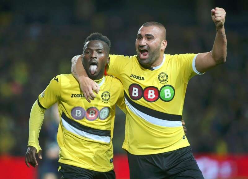 קאיודה חוגג עם ערן לוי. נתניה תקבל 60 אחוזים מהעסקה // צילום: אלן שיבר