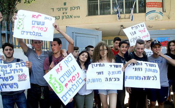 עשרות תלמידים, הורים, מורים ומנהלים הגיעו אמש להפגין מחוץ לתיכון עירוני ד' בתל אביב. בהפגנה, שהתקיימה בעת ניסוי שתוכנן לשעה 12:00, השתתפו תלמידי עירוני ט', עירוני י"א, עירוני י"ד, תיכון חדש, עירוני א' וביאליק־רוגוזין, והביעו את התנגדותם לנהלים המחייבים את התלמידים לשהות בכיתה 45 דקות לפני תחילת המבחן. יחד עם זאת, כל בית ספר מינה נציג שבדק את תקינות המערכת הממוחשבת שדרכה העביר משרד החינוך את התכנים. המפגינים החזיקו שלטים שעליהם נכתב "בית ספר זה לא כלא", "כאן לא עושים ניסויים בבני אדם" ועוד.