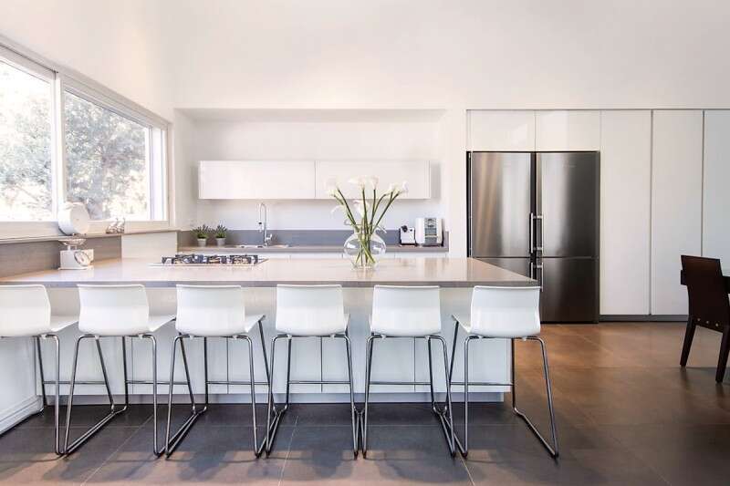 לדברי רינה אלקובי, מעצבת הבית של מטבחי DECOR, "אחת המגמות שמתחזקות היא מטבח בעיצוב מינימליסטי. מוצרי החשמל שבעבר בלטו על משטחי השיש הולכים ומוסתרים בזכות מנגנונים ופרזולים איכותיים שמצניעים אותם, כדי לייצר מראה נקי היוצר מקשה אחת וקווים אחידים. הצבעים הבהירים ממשיכים לשלוט במטבח. הלקוח הישראלי מעדיף את גוני השמנת והלבן שנותנים למטבח מראה נקי. הצבעים שעתידים להיכנס למטבח כוללים צבעים עדינים דוגמת הסגלגל והקפה, עם צבעים מעט נועזים יותר דוגמת קאמל, ירוק וגון המרסלה.