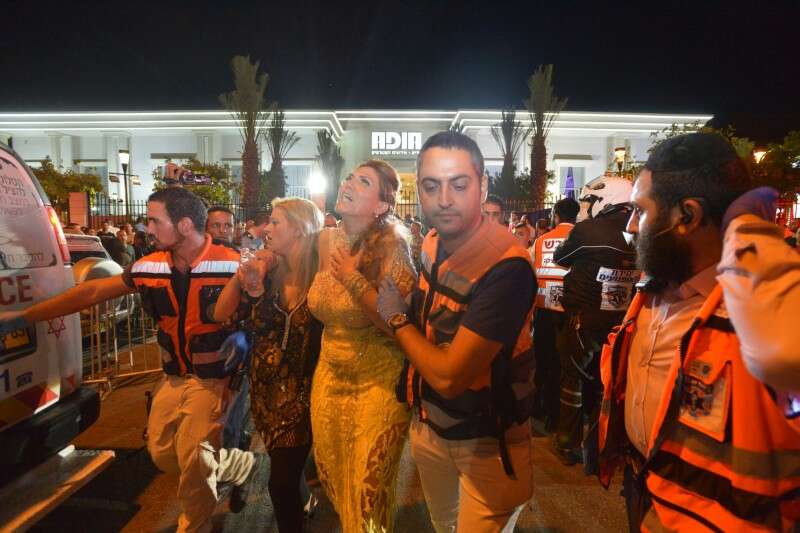 פאראמדיק מד"א מייק פרז שהגיע בין הראשונים למקום מספר: "במקום הייתה המולה רבה, חלק מהפצועים התהלכו וחלקם שכבו במרכז האולם. האנשים במקום היו מבוהלים וניסו למלט את עצמם מחוץ לאולם. ערכנו מיון ראשוני ואבחנו בשלושה פצועים שוכבים, אחת מהן הייתה מחוסרת הכרה ללא דופק וללא נשימה. החלנו לבצע בה מיד פעולות החייאה ולהעניק לה טיפול רפואי מציל חיים ולצערנו לאחר מאמצים נאלצנו לקבוע את מותה במקום. גבר נוסף נפגע בראשו, היה בהכרה והוגדר באורח בינוני, והשאר במצב קל".