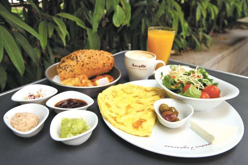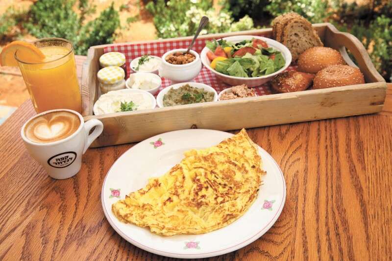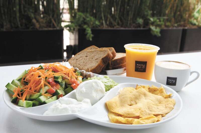גמישות: תוספות לחביתה יעלו 5-3 ש' (פטריות יעלו 3 ש', גבינת פטה 5 ש'). המרת המיץ לשתייה קלה, הגדלת הקפה והחלפה לחלב סויה ללא תוספת תשלום.