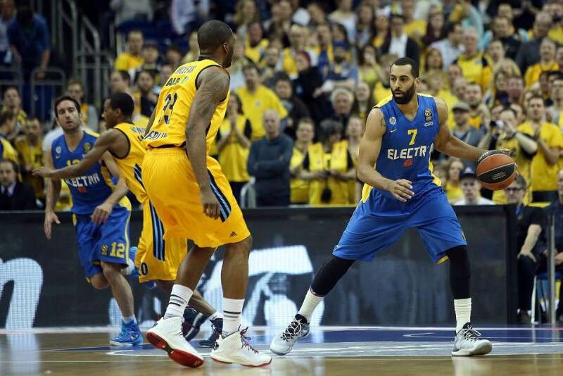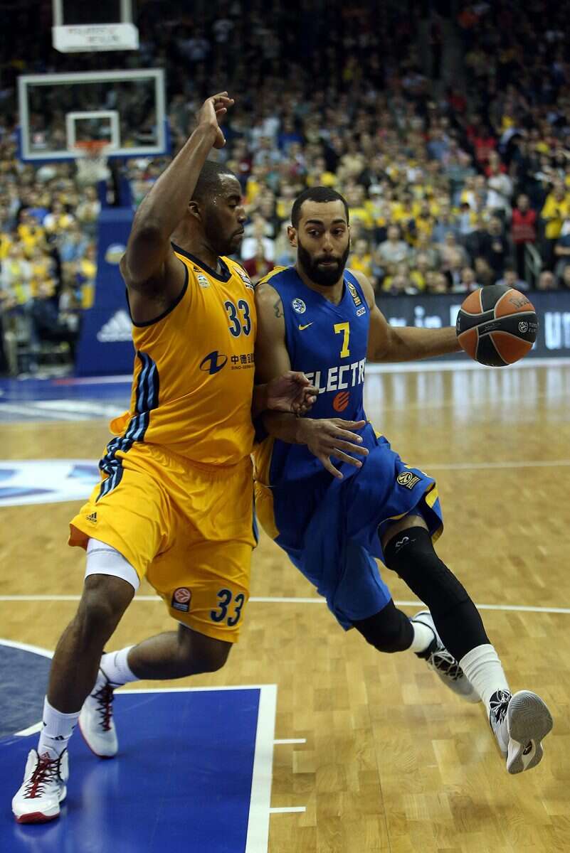 מקלין (משמאל) מול רנדל. פגש את מכבי ארבע פעמים וקלע 14 נק' בממוצע // צילום: אודי ציטיאט