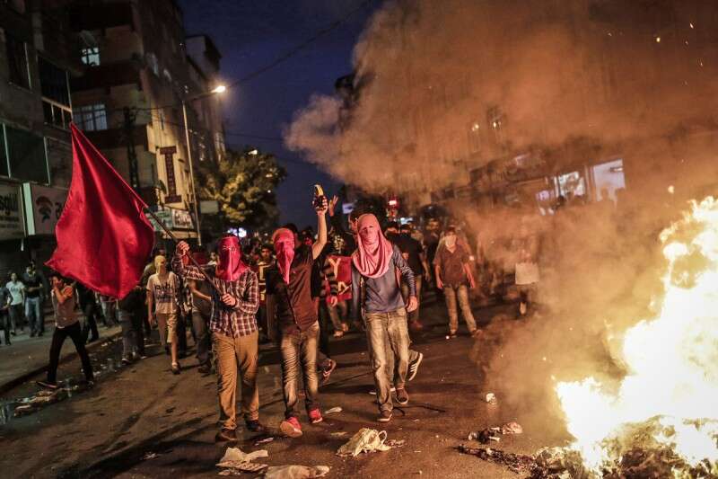 מפגינים בטורקיה מוחים על הצעדים שמבצעת אנקרה נגד הכורדים // צילום: אי.אף.פי