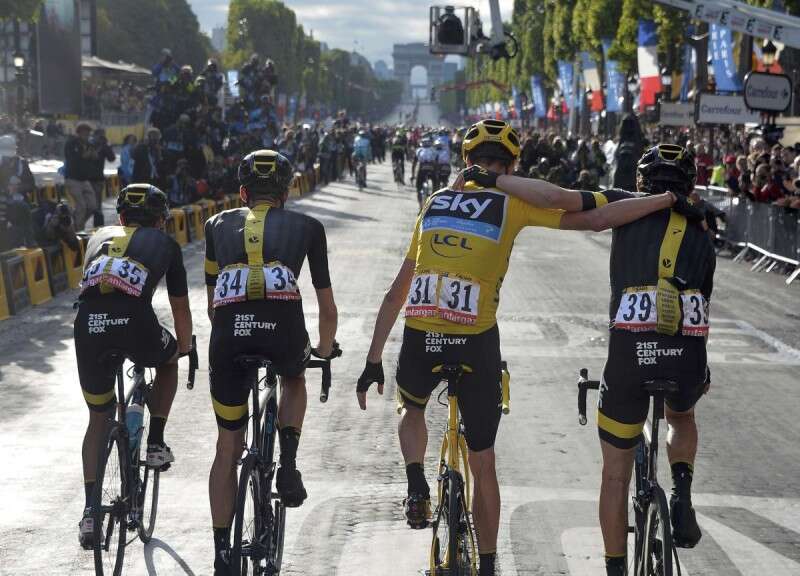 לאחר שהתגבר על תקר בגלגל, נאלץ להחליף אופניים, כמעט התרסק כשעלה על בקבוק שתייה ולגם מכוס השמפניה המסורתית, חצה הרעב (א') כריס פרום את קו הסיום בשאנז אליזה מלווה בחבריו לקבוצת סקיי. כצפוי, הוא הפך לבריטי הראשון בהיסטוריה שזוכה פעמיים במירוץ האופניים היוקרתי בעולם.