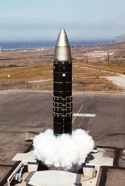 טיל "פיסמייקר" המסוגל לשאת סוגים שונים של ראשי נפץ גרעיניים. צילום: USA Air Force