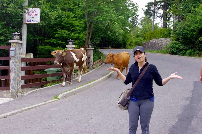 "מכונית מתהפכת רק אם יש עצם שמפריע לה בדרך. את תתהפכי חלילה רק אם נניח תהיה פרה על הדשא". מצד ימין אני קולטת חבורה של פרות עם מבט של "אל תתעסקי איתנו".