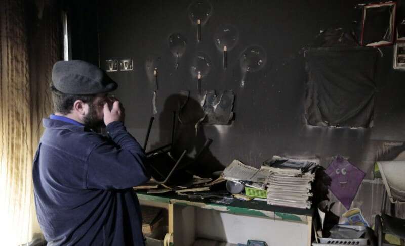 בוחנים את הנזקים לאחר ההצתה אשתקד // צילום: אורן בן חקון