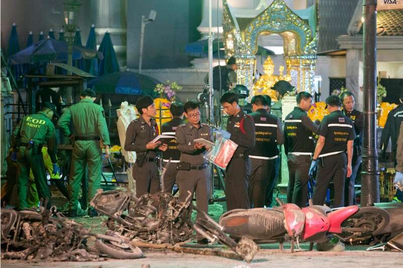 מארקו קנינגהאם, חובש ניו זילנדי העובד עם שירות האמבולנסים בבנגקוק, סיפר כי הפיצוץ יצר מכתש בקוטר שני מטרים. "הזירה נראתה כמו שוק בשר", תיאר, "היו גופות בכל מקום, חלקן מרוטשות לגמרי".