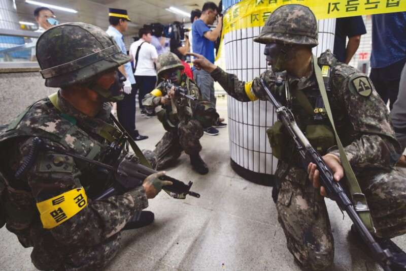 מאז הסתיימה המלחמה בין שתי המדינות בשנת 1953 הן מצויות במתיחות מתמדת. באזור החיץ בין שתי המדינות - המתבסס על קו הרוחב 38 צפון - מוצבים כמעט 30,000 חיילים אמריקנים האמונים על אכיפת שביתת הנשק השברירית. מחלקת המדינה האמריקנית הפצירה במשטרה של צפון קוריאה, החמוש בנשק גרעיני, "להימנע מפעולות ומהצהרות המסכנות את שלומו של האזור ואת ביטחונו".