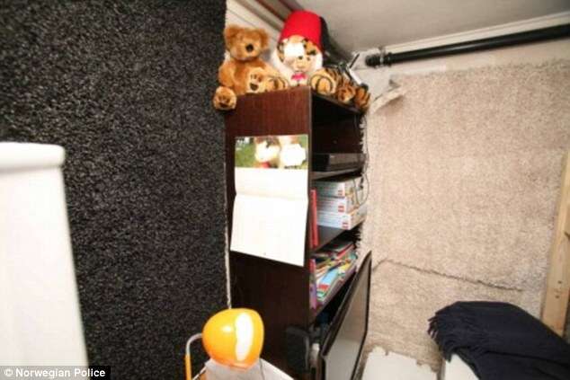 בתמונות ניתן לראות את המיטה, ועליה מצעים בדמותו של "סופר מריו", משחקי קופסא, לגו, בובות וצעצועים למינהם. בד בבד, כוסו הקירות והתקרה במרתף בשטיח עבה כדי למנוע בריחת רעשים. החוקרים גם החרימו מרשותו אקדח הלם, אַלָּה ומחבוא של חומרי פרונוגרפיית ילדים.