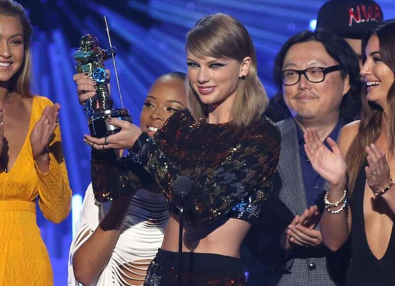 מצד נושאת עלה הזית שוחרת השלום ניצבת טיילור סוויפט, הזוכה הגדולה של הערב עם סך מצטבר של ארבע זכיות בפסלון איש הירח של ה-VMA, כולל קליפ השנה עבור "Bad Blood״, הלהיט הקיצי שבעצמו נכתב על פי השמועות על אודות היריבות שלה עם כוכבת הפופ קייטי פרי. סוויפט, שעלתה לקבל את הפרס עם כמה מחברותיה המפורסמות שהשתתפו בקליפ על תקן לוחמות בצבא טיילור, אמרה כי היא ״גאה לחיות בעולם בו בנים יכולים לגלם נסיכות ובנות יכולות לגלם חיילים״.