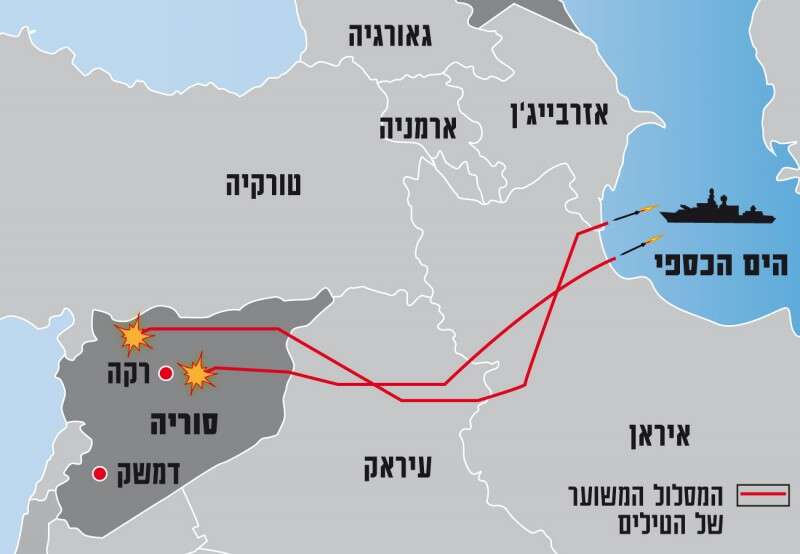 זה בהחלט היה מפגן של עוצמה: הצבא הרוסי שיגר אתמול מהים הכספי 26 טילי שיוט ארוכי טווח לעבר מטרות בסוריה, מרחק של כ־1,500 ק"מ. שר ההגנה הרוסי, סרגיי שויגו, הודיע אתמול כי הטילים שוגרו לעבר 11 יעדים שונים ולטענתו פגעו במטרותיהם, שכללו מרכזי פיקוד ושליטה ומחסני תחמושת של דאעש, והשמידו אותם ללא פגיעה באזרחים.