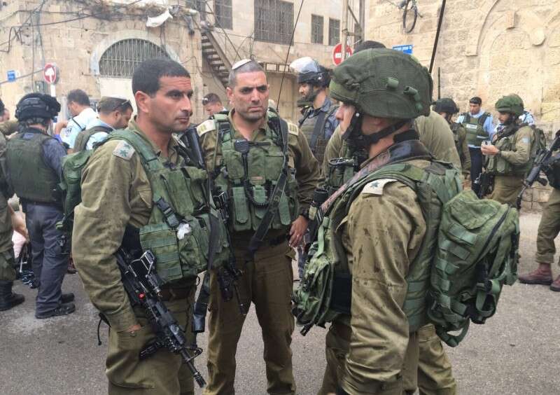 מח"ט יהודה, אל"ם יריב בן עזרא ומג"ד צבר, סא"ל קובי בראל בזירת הפיגוע סמוך למערת המכפלה, חברון // צילום: דובר צה"ל