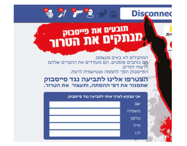 ארגון שורת הדין, העוסק במלחמה משפטית נגד הטרור, פתח בעקבות גל הטרור במהלך חסר תקדים והצליח לגייס בשבוע האחרון אלפי ישראלים תחת הכותרת: "תובעים את פייסבוק - מנתקים את הטרור". בארגון מצפים שבית המשפט בניו יורק יוציא צו מניעה כנגד פייסבוק, ויחייב את הרשת החברתית לקחת אחריות ולהביא לסגירת כל דפי ההסתה, תוך ניטור המסיתים וחסימתם. לטענת התובעים, מתקפת הפיגועים מהחודש האחרון מושפעת רבות מהמדיות החברתיות השונות, ובאופן מיוחד על ידי פרסומים של פלשתינים ברשת הפייסבוק.