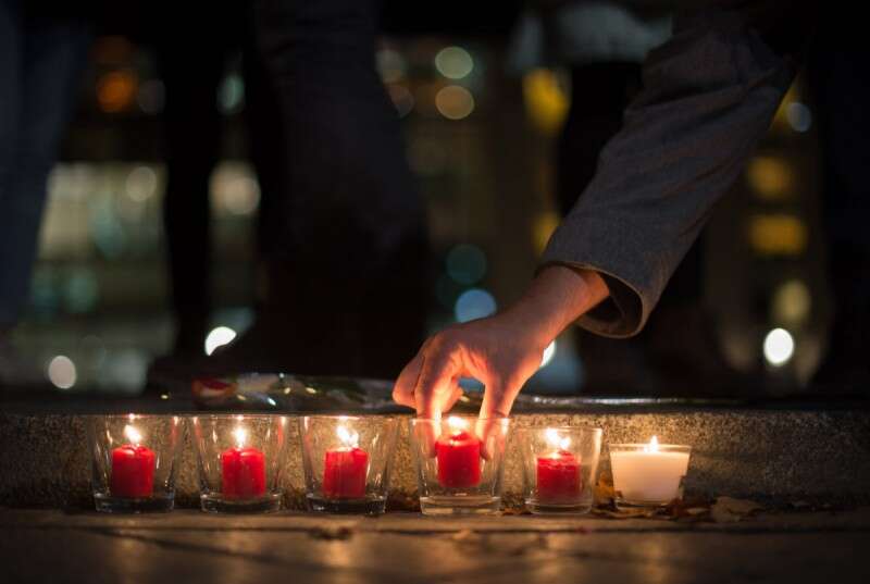 מדליקים נרות לזכר ההרוגים, מחוץ לשגרירות צרפת בברלין // צילום: אי.פי.איי