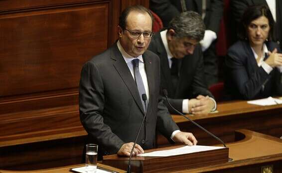 מאוחר יותר, נשיא צרפת פרנסואה הולנד עלה לדוכן הנואמים, ואמר כי "צרפת מצויה במלחמה, פעולות הטרור הן הכרזת מלחמה נגד מדינתנו, הנוער שלנו ואורח החיים שלנו", אמר בהתייחסו לכך שרוב ההרוגים והפצועים במועדון הבטקלאן היו צעירים, והמשיך "בתקופה קשה זו, ביקשתי לכנס את הקונגרס – הדמוקרטיה שלנו ניצחה אויבים קשים בהרבה, קשים יותר מהרוצחים השפלים הללו".