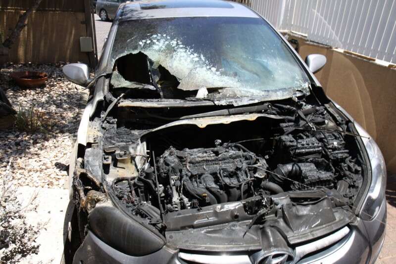 רכבו השרוף של אדרי בשנת 2013 // צילום: ציון ברבי