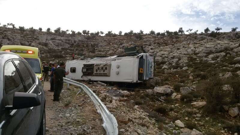 מנחם לף, ראש סניף בנימין של איחוד הצלה, דיווח מהזירה כי "מדובר באוטובוס שהתהפך לתעלה בצד הדרך. מרבית הנפגעים בהכרה מלאה ויצאו מהאוטובוס בכוחות עצמם. כמו כן ישנם מספר לכודים בתוך האוטובוס. בסיוע מתנדבים נוספים מיחידת האופנועים של איחוד הצלה אנחנו מעניקים טיפול רפואי ראשוני לנפגעים. צוותי כיבוי פועלים בזירה לחילוץ הלכודים".