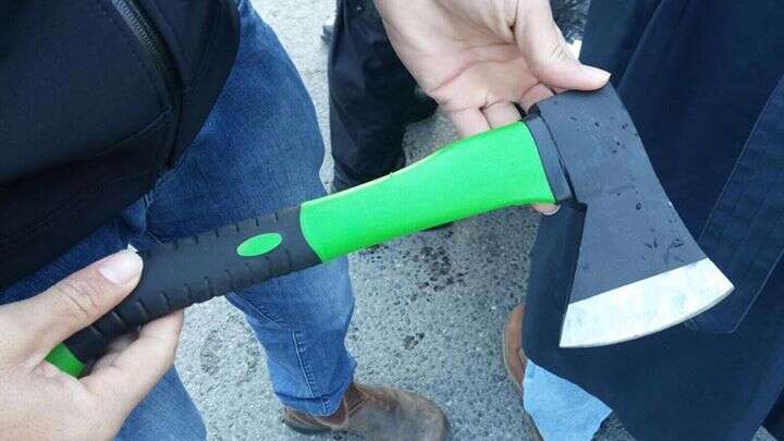 הגרזן שנתפס ברכבו של המחבל // צילום: סוכנות TPS