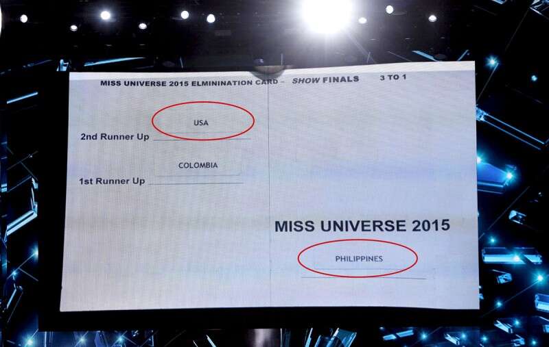 שתי דקות בלבד לאחר שמיס קולומביה, אריאדנה גוטיירס, הגשימה את חלומה והוכתרתה כמיס יוניברס, פנה המנחה סטיב הרווי לקהל ואמר בהססנות "אני חייב להתנצל". גוטיירס, שנופפה לכל הכיוונים כשהיא עוטה בכתר ומחזיקה פרחים, פנתה לכיוון הרווי בצחוק של מבוכה וניגבה את דמעות האושר, בזמן שהסטנדאפיסט שהפך את עצמו לבדיחה עולמית הודיע כי טעה וכי הזוכה היא למעשה מיס פיליפינים, פיה אלונזו וורצבך.