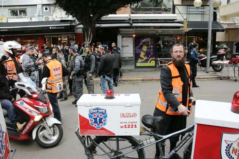 יהודה הילדסהיים, מתנדב באיחוד הצלה, סיפר: "כשהגעתי לזירה נתקלתי בפצוע אנוש וללא הכרה לאחר שנפגע מירי. יחד עם מתנדבים נוספים מיחידת האופנועים של איחוד הצלה הענקנו טיפול רפואי ראשוני והוא פונה לבית החולים איכילוב. בשלב זה אנחנו מטפלים בזירה במספר נפגעים נוספים חלקם נפגעו משברי זכוכית כתוצאה מהירי והאנדרלמוסיה שנוצרה במקום".
