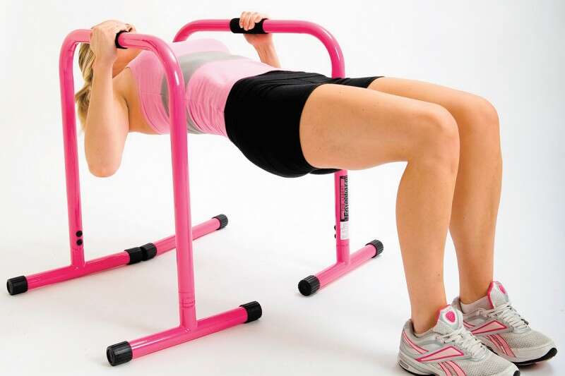 על המכשיר: מעמדים מייצבים מסתובבים לשכיבות סמיכה. אפשר לשנות את זווית הדחיפה וכך לשנות את העבודה משרירי החזה לשרירי היד האחורית.